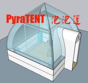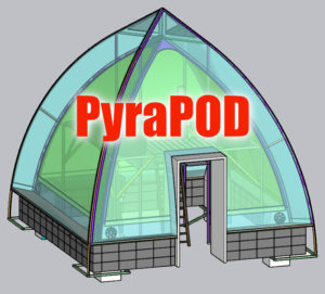 (3) PyraTENT (P4T2m) is another version of the PyraPOD structure utilizing Richard Nelson’s SolaRoof technology. Its square footing is still 4×4 meters. Since it is a tent, there is no second level floor. Click to learn more about PyraTENT.