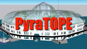 (9) PyraTOPE (P16W12m) is simply a much expanded version of PyraFLOT that can house up to 96 families in one structure. It is meant for a large community of people who would like to live together on still water. Many functions can be built in to meet the community needs. Click to learn more PyraTOPE.