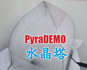 (2) PyraDEMO (P4A34x42cm) is the smallest model we have developed so far. We have reduced its size to 34 cm in length and width, and 42 cm in height. The whole is crystal clear without bubble filling and white sparkling with bubbles filled inside. Click to learn more about PyraDEMO.